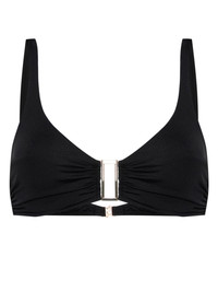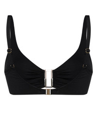 Bel Air hardware-detailed bikini top Highlights - Black - Stretch-design - Gold-tone hardware - Plunging v-neck - Triangle cup - Rear clasp fastening - Adjustable spaghetti straps - Be mindful to try on swimwear over your own garments. - Learn more about what makes a product conscious on our conscious criteria page Made in Italy Composition Polyamide 86%, Spandex/Elastane 14% Washing instructions Hand Wash