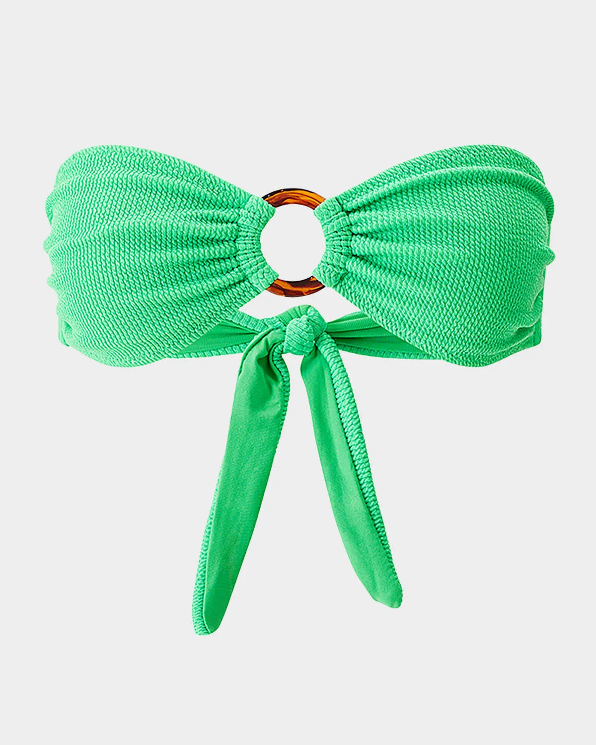 - Melissa Odabash "Belgium" bikini top accented with a central tortoise ring - Strapless neckline - Mid-back self-ties - Nylon/polyamide/elastane - Fully lined - Hand wash - Trim: Polypropylene - Made in Italy - Bottoms sold separately