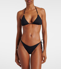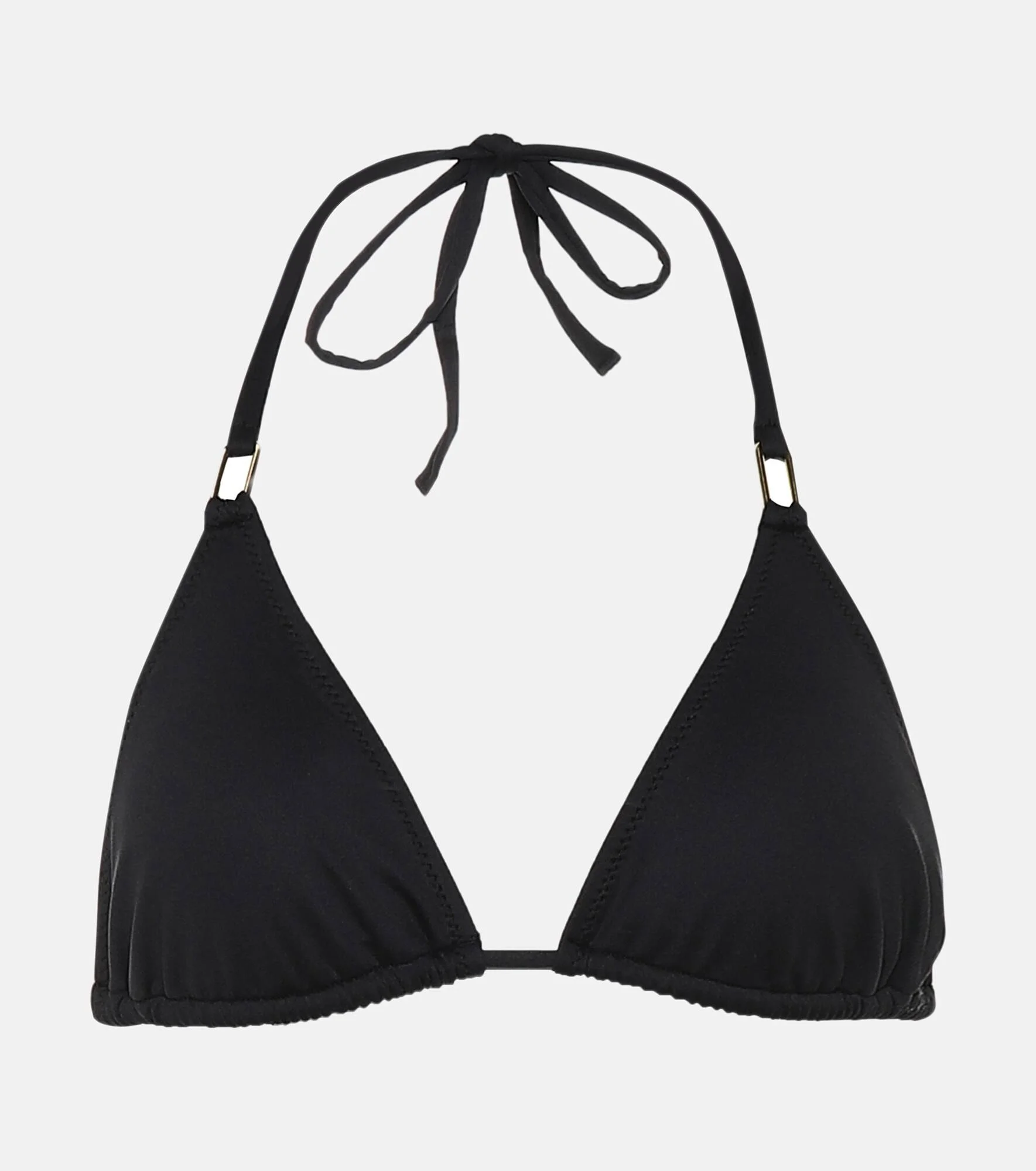 Melissa Odabash's Cancun bikini top works a triangle silhouette that's as timeless and versatile as its solid black colorway. The design has been made in Italy from technical stretch swim fabric, and it's topped with halter ties to ensure you can get the fit just right. Pair yours with coordinating bottoms for a sleek poolside look. Product Details - Made in Italy - Material: 86% polyamide, 14% elastane - Self-tie neck, back and sides - Designer color name: Black - Care instructions: hand wash - Item number: P00391870 Size & Fit - True to size - Removable padding - The model seen in the picture is 178cm-5'10", cup size B, and wearing a size IT 40