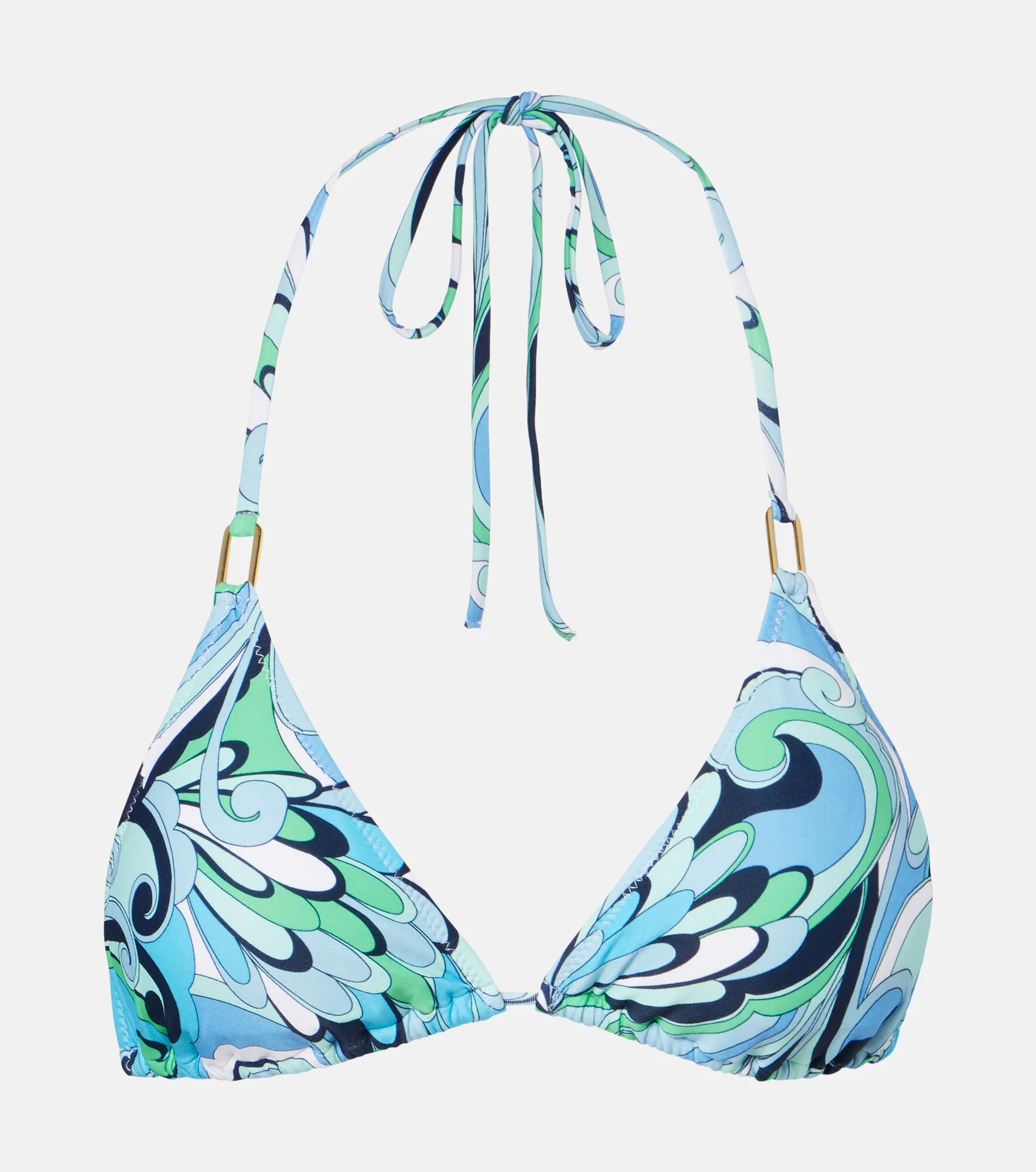 Trips to far-flung destinations aren't complete without Melissa Odabash's Cancun bikini top. This printed piece features self-tie straps and removable cups, while gold-toned hardware provides a touch of glamour. Product Details - Material: 86% polyamide, 14% elastane - Care instructions: hand wash - Made in Italy - Color: blue - Designer color name: Utopia - Removable cup padding - Self-tie neck and back - Item number: P01165297 Size & Fit - True to size - Removable padding - The model seen in the picture is 178cm-5'10", cup size B, and wearing a size IT 40