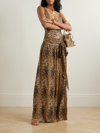 Elsa Belted Leopard-print Jersey Maxi Wrap Skirt