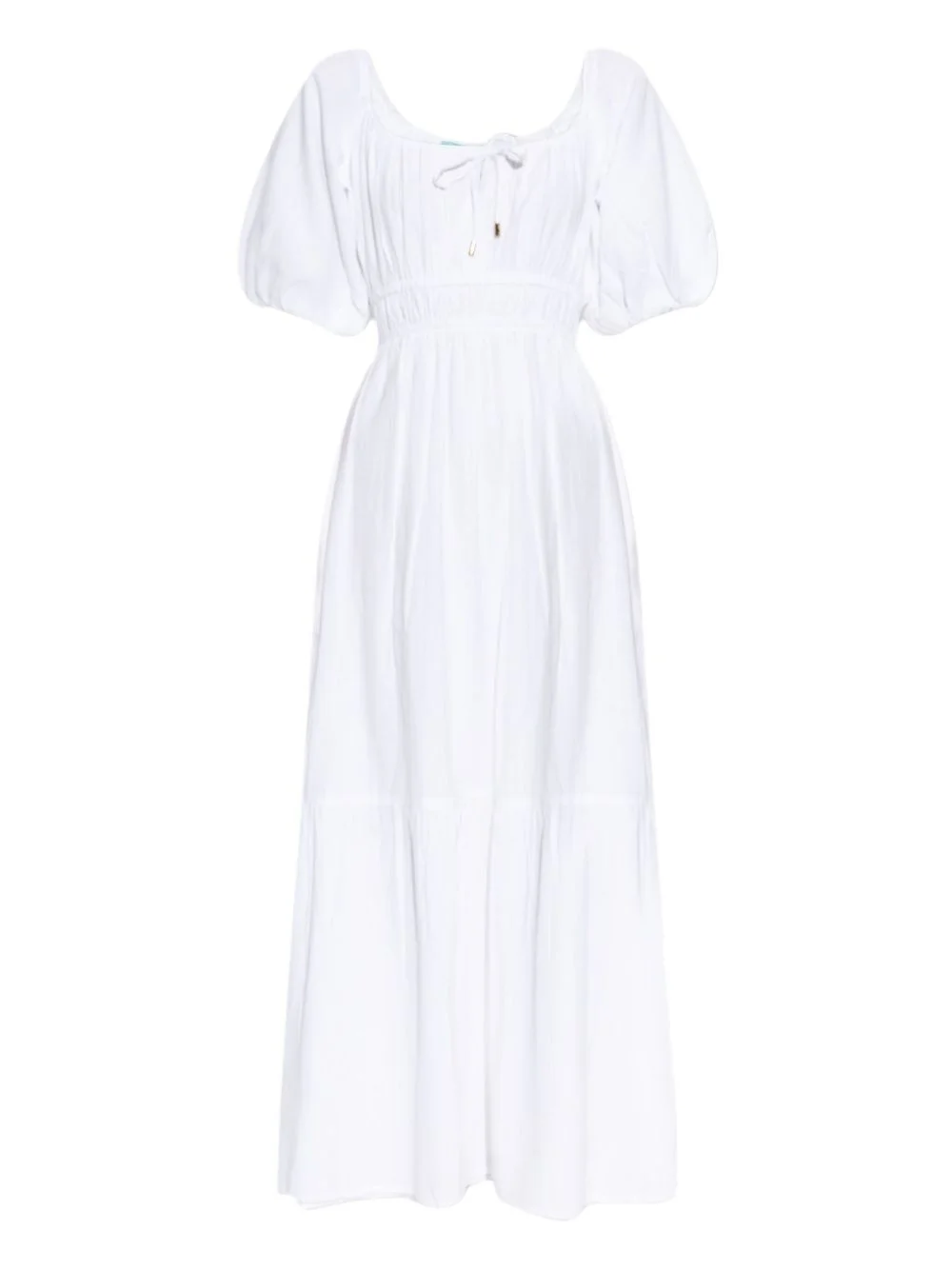 Eden puff-sleeve maxi dress Highlights - White - Square neckline - Tie detail at the front - Elasticated waist - Puff sleeves - Tiered skirt Imported Composition Cotton 100%