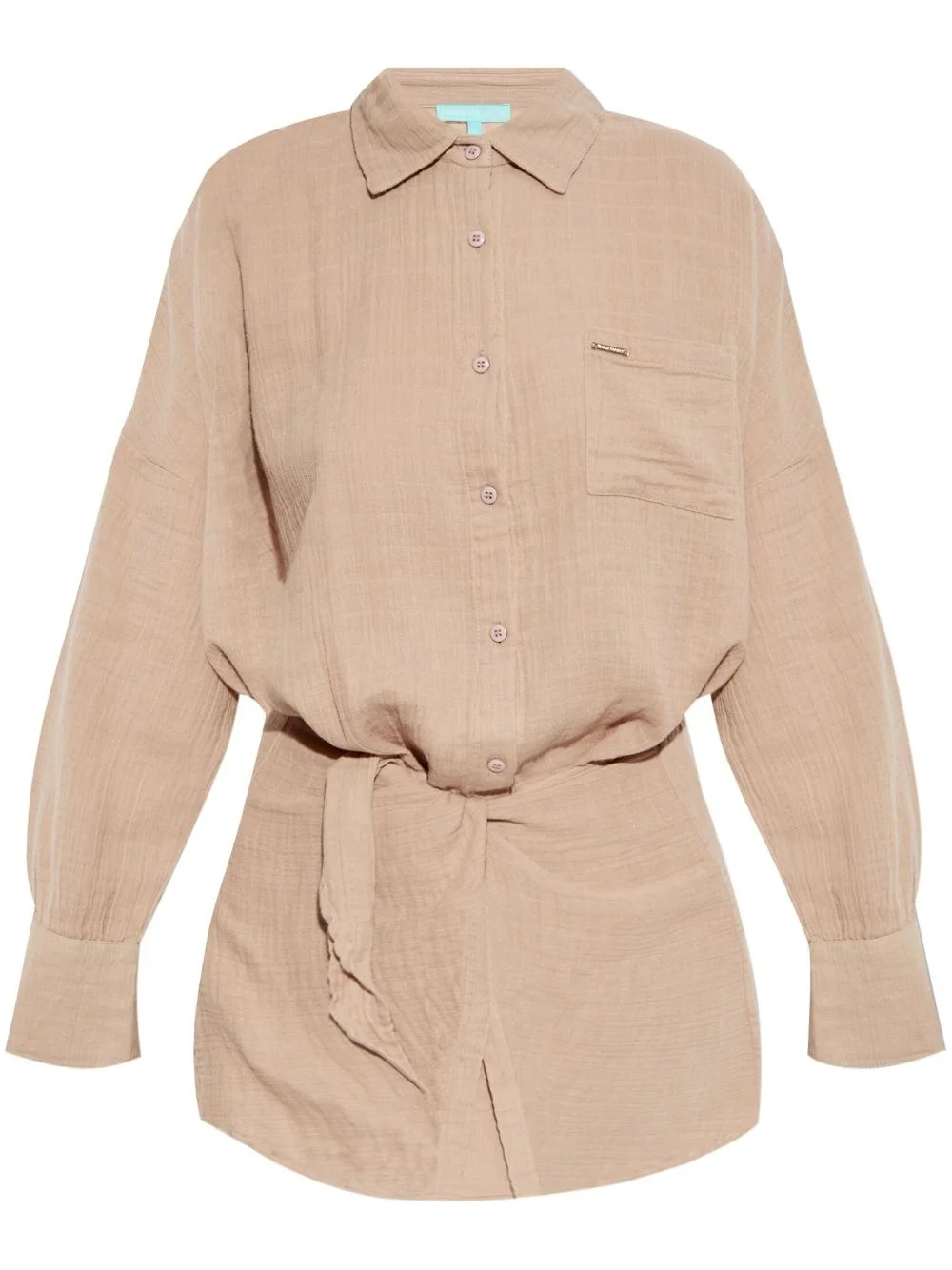 Sara dress Highlights - Beige - Front button fastening - Front tie fastening - Chest patch pocket - Buttoned cuffs Imported Composition Cotton 100%