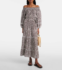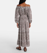 After working as a swimwear model, Melissa Odabash used her experience to create designs that are equal parts stylish and comfortable. This breezy midi dress is the perfect design to take you from beach to city, with its lightweight gathered construction and all-over print. Product Details - Material: 100% viscose - Care instructions: hand wash - Made in Italy - Designer color name: Ikat - Item color: brown, beige, multicolor - Item number: P01041626 Size & Fit - True to size - Off-the-shoulder - Loose fit, elasticated waist - Non-stretchy fabric - The model seen in the picture is 178cm-5'10" and wearing a size XS