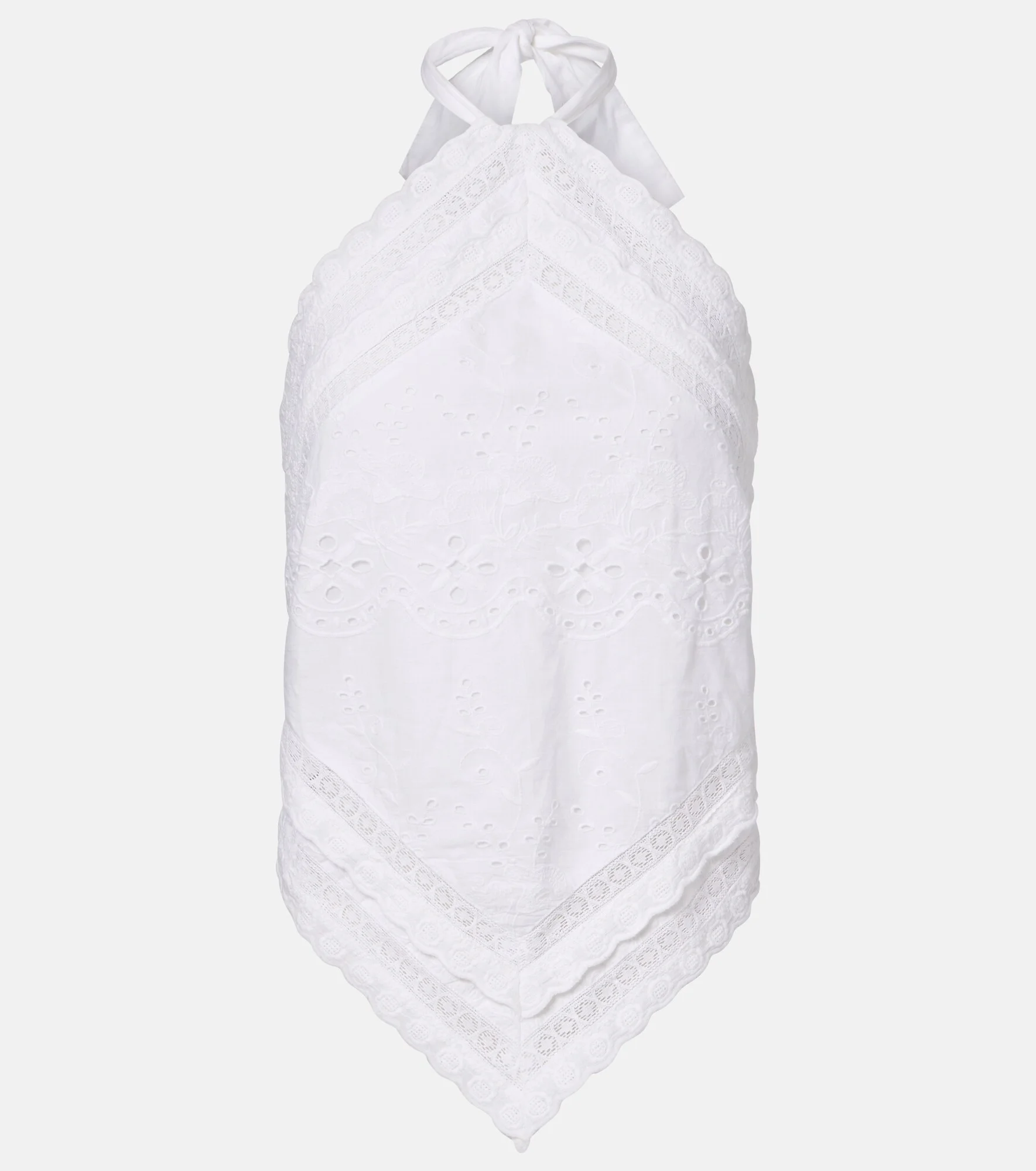 The Felicity top from Melissa Odabash is cut from cotton, showcasing a flattering halterneck silhouette and asymmetric hem. The design is decorated with lace trims and intricate embroidery on the front. Product Details - Material: 100% cotton - Care instructions: hand wash - Made in China - Color: white - Designer color name: White - Self-tie neck and back - Item number: P01165055 Size & Fit - True to size - Low back - Cinched waist - Adjustable at the waist - Non-stretchy fabric - Falls to the hip - The model seen in the picture is 178cm-5'10" and wearing a size XS