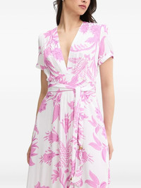 floral-print maxi dress Highlights - White - Floral print - V-neck - Short sleeves - Wrap style - Self-tie belt Imported Composition Fabric 100% Washing instructions Read Manufacturer Guidelines