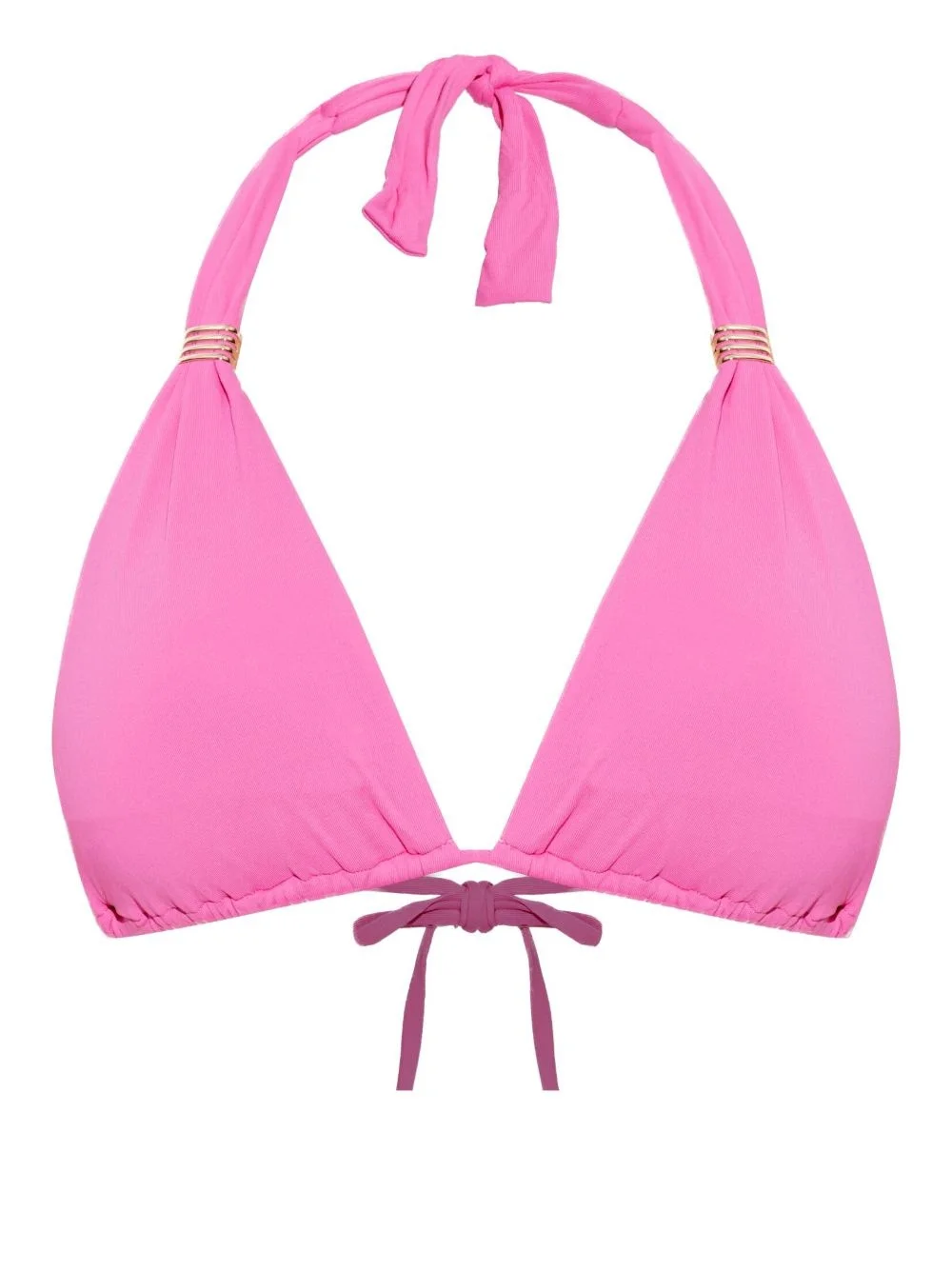 Grenada bikini top Highlights - Ultra pink - Self-tie fastening - Triangle cup - Ring embellishment - Be mindful to try on swimwear over your own garments. Made in Italy Composition Polyamide 86%, Spandex/Elastane 14% Washing instructions Read Manufacturer Guidelines