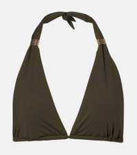 Complete your destination wardrobe with the Grenada bikini top from Melissa Odabash. Designed with SPF 50+ protection, the halterneck style has gold-toned hardware and can be adjusted for a customized fit. Match it with the label's coordinating bikini bottoms. Product Details - Material: 86% polyamide, 14% elastane - Care instructions: hand wash - Made in Italy - Designer color name: Olive - Item color: green - Hardware color: gold - Padded cups - Self-tie neck and back - Item number: P01125430 Size & Fit - True to size - Removable padding - The model seen in the picture is 178cm-5'10", cup size B, and wearing a size IT 40