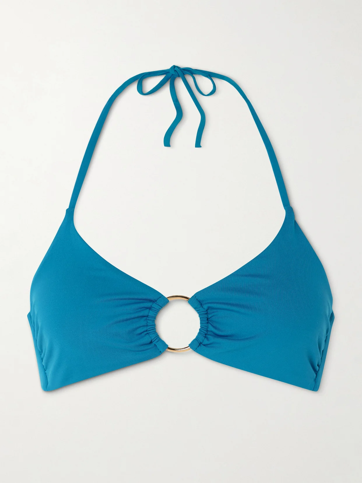 Confidence-inspiring styles are Melissa Odabash's specialty, and you're sure to feel your best in this ‘Hamburg' bikini top. It's cut from smooth stretch fabric that's quick-drying and has SPF 50+ protection. Match your jewelry to the gold-tone ring embellishment at the center and adjust the ties to your ideal fit.
