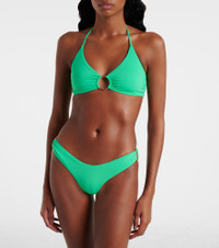 After working as a swimwear model, Melissa Odabash used her experience to create designs that are equal parts stylish and comfortable. The Hamburg bikini top features a halterneck design and the brand's signature ring at the center. Product Details - Material: 86% polyamide, 14% elastane - Care instructions: hand wash - Made in Italy - Designer color name: Green - Item color: green - Closure: self-ties - Item number: P01053060 Size & Fit - True to size - Unpadded Top - The model seen in the picture is 178cm-5'10", cup size B, and wearing a size IT 40