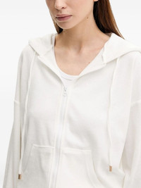 hooded zip-up top Highlights - White - Zip fastening - Long sleeves - Hooded neckline - Ribbed cuffs - Welt pockets Imported Composition Cotton 80%, Polyester 20% Washing instructions Read Manufacturer Guidelines