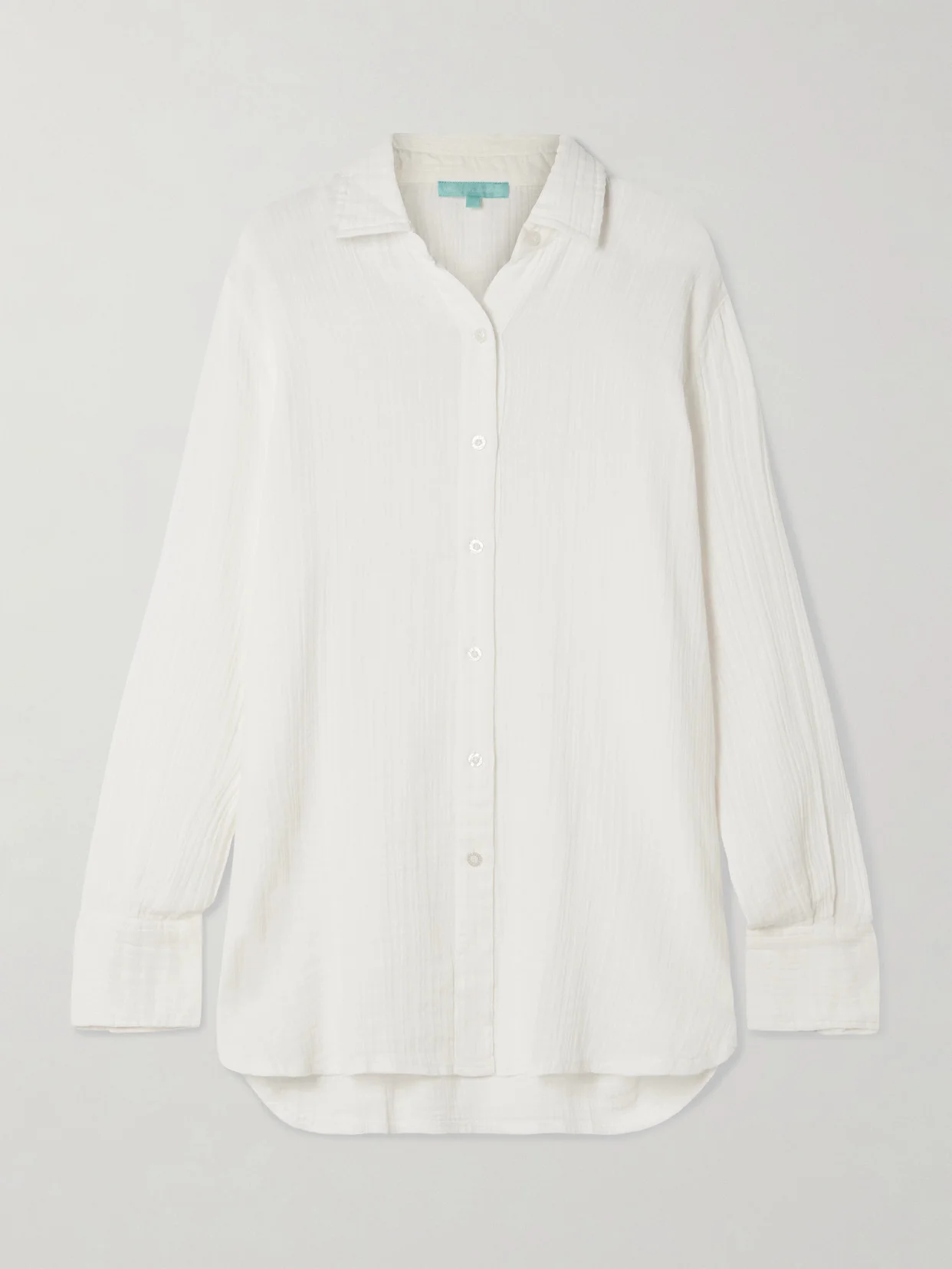 There's a sophistication and ease to Melissa Odabash's 'Leona' shirt. It's cut in a relaxed shape from airy cotton that's lightly crinkled for a tactile finish. Team yours with the sandals and the matching pants.