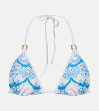 After working as a swimwear model, Melissa Odabash used her experience to create designs that are equal parts stylish and comfortable. The Malta bikini top showcases a beach-ready print and tie straps for a secure fit. Product Details - Material: 86% polyamide, 14% elastane - Care instructions: hand wash - Made in Italy - Designer color name: Florian - Item color: white, blue - Hardware color: gold - Self-tie neck and back - Padded cups - Includes: dust bag - Item number: P01125390 Size & Fit - True to size - Removable padding - The model seen in the picture is 178cm-5'10", cup size B, and wearing a size IT 40