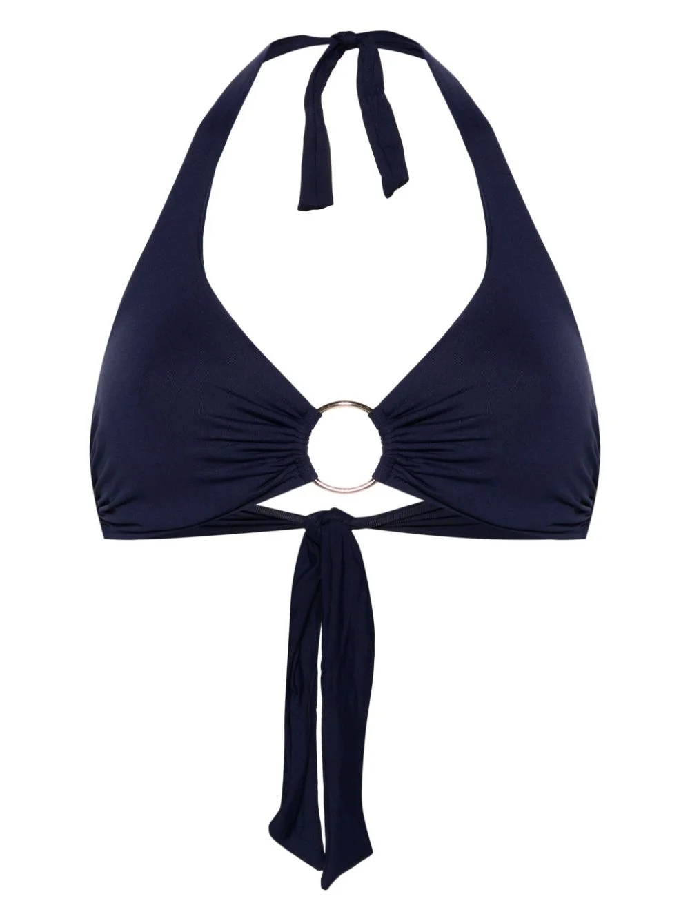 Brussels ring-detailed bikini top Highlights - Navy blue - Stretch-design - Ring hardware detailing - Halterneck tie fastening - Triangle cup - Rear tie fastening - Be mindful to try on swimwear over your own garments. Made in Italy Composition Polyamide 86%, Spandex/Elastane 14%