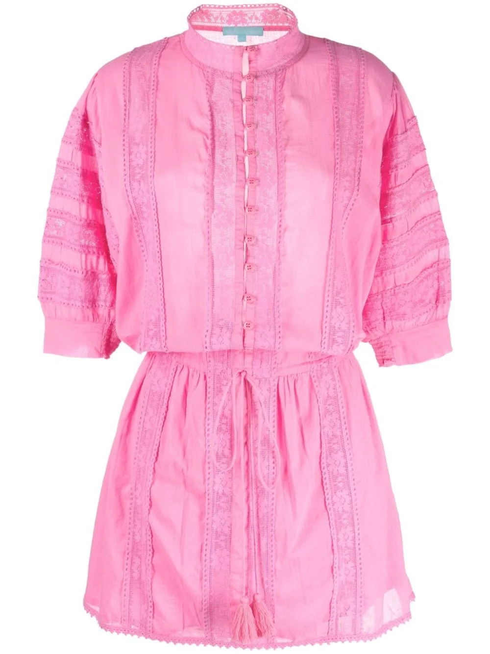Rita cotton minidress Highlights - Pink - Cotton - Tonal stitching - Lace detailing - Tassel detail - Round neck - Front button fastening - Half-length sleeves - Drawstring waist - Straight hem - Thigh-length Imported Composition Cotton 100% SIZE & FIT Model measurements Height 5 ft 10 in(1.78 m) Bust/Chest 30.31 in(77 cm) Hips 34.64 in(88 cm) Waist 24.01 in(61 cm) FittingInformation Designed to be unstructured, offering a loose fit throughout The belt offers adjustability for fitted preferences Made from a lightweight non-stretch fabric This piece fits true to size – take your usual size Washing instructions Hand Wash