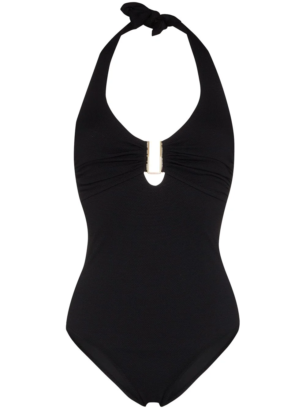Tampa halterneck swimsuit Forget your LBD, this season is about the LBS...Little Black Swimsuit. In a deep black hue with ruched detailing, this Tampa swimsuit from Melissa Odabash is one for the history books. And your closet. Featuring a halterneck, a back tie fastening, a ruched design and a fitted silhouette. Swimwear must be tried on over your own garments. Made in Italy Composition Polyamide 91%, Elastane 9% SIZE & FIT Model measurements Height 5 ft 9 in(1.75 m) Bust/Chest 32.67 in(83 cm) Hips 36.22 in(92 cm) Waist 24.8 in(63 cm) FittingInformation This piece fits true to size. We recommend you get your regular size Made with a mid-weight stretch fabric Washing instructions Hand Wash
