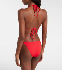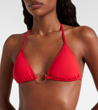 After working as a swimwear model, Melissa Odabash used her experience to create designs that are equal parts stylish and comfortable. Designed with SPF 50+ protection, the Miami bikini top is a triangle style with gold-toned O-ring detailing. Product Details - Material: 86% polyamide, 14% elastane - Care instructions: hand wash - Made in Italy - Designer color name: Red - Item color: red - Hardware color: gold - Removable cup padding - Self-tie neck and back - Item number: P01125437 Size & Fit - True to size - For larger bust sizes we recommend taking one size up - Removable padding - The model seen in the picture is 178cm-5'10", cup size B, and wearing a size IT 40
