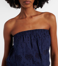 Choose Melissa Odabash's Naomi jumpsuit for unmatched ease. Perfect for warmer temperatures, the design is made from lightweight cotton with a strapless bodice, a shirred waistband, and relaxed, wide legs. Product Details - Material: 100% cotton - Care instructions: machine wash at 30 degrees - Made in India - Color: blue - Designer color name: Navy - Elasticated waistband - Item number: P01130281 Size & Fit - True to size - Strapless - Loose fit, elasticated waist - Non-stretchy fabric - Wide-leg - The model seen in the picture is 178cm-5'10" and wearing a size XS
