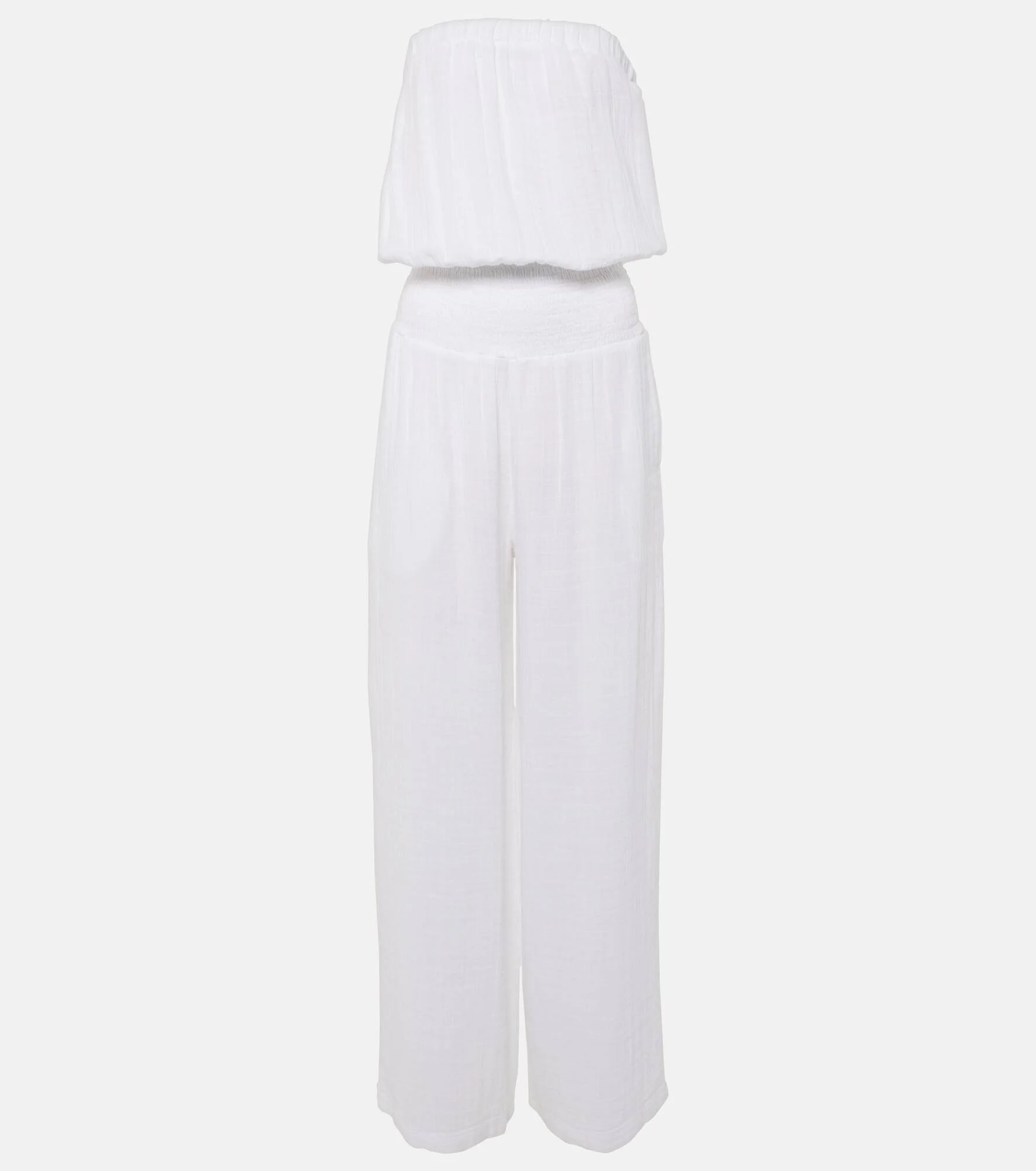 Product Details - Material: 100% cotton - Care instructions: hand wash - Made in India - Designer color name: White - Elasticated waistband - Pockets: side slit pockets - Item number: P00929183 Size & Fit - True to size - Strapless - Loose fit, elasticated waist - Non-stretchy fabric - Wide-leg - The model seen in the picture is 178cm-5'10" and wearing a size XS