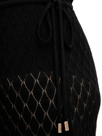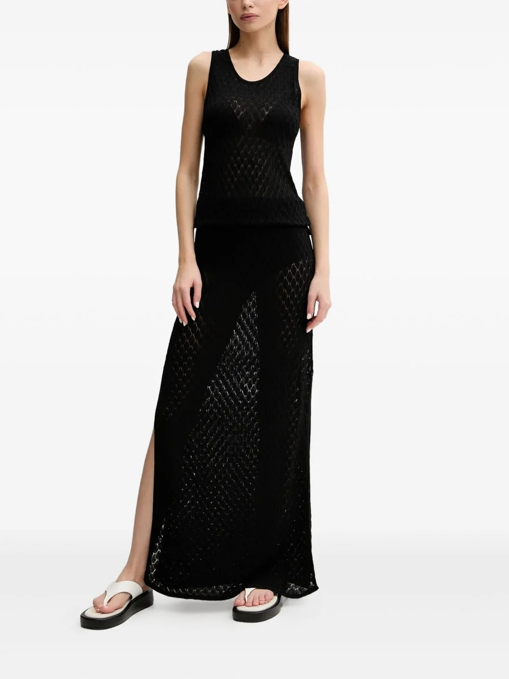 open-knit side-split maxi dress Highlights - Black - Open knit - Side split - Sleeveless top - Drawstring waist Imported Composition Fabric 100% Washing instructions Read Manufacturer Guidelines