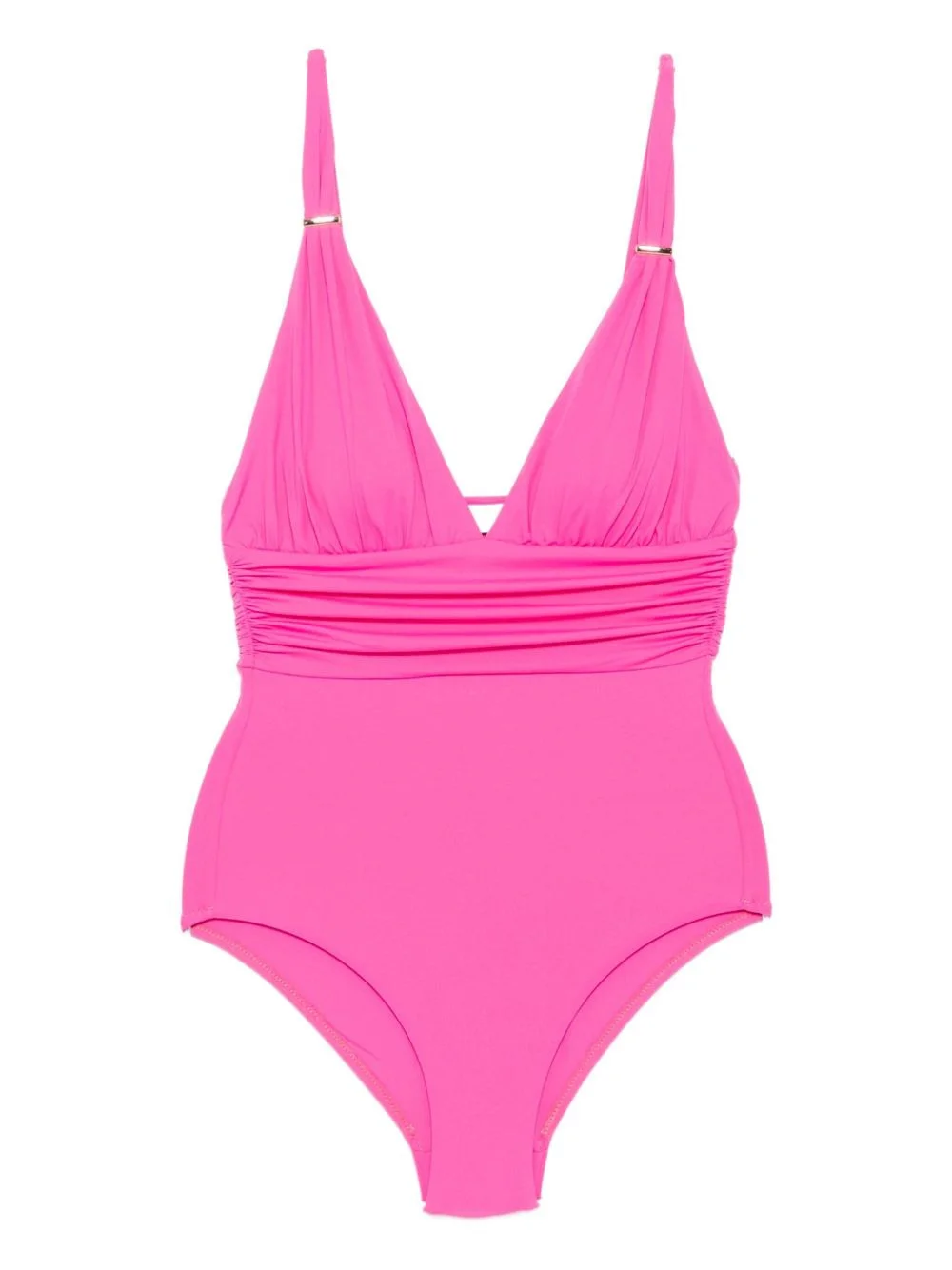 Panarea swimsuit Highlights - Bubblegum pink - Two adjustable shoulder straps - Sleeveless - V-neck - Be mindful to try on swimwear over your own garments. Made in Italy Composition Polyester 86%, Elastane 14% Washing instructions Hand Wash