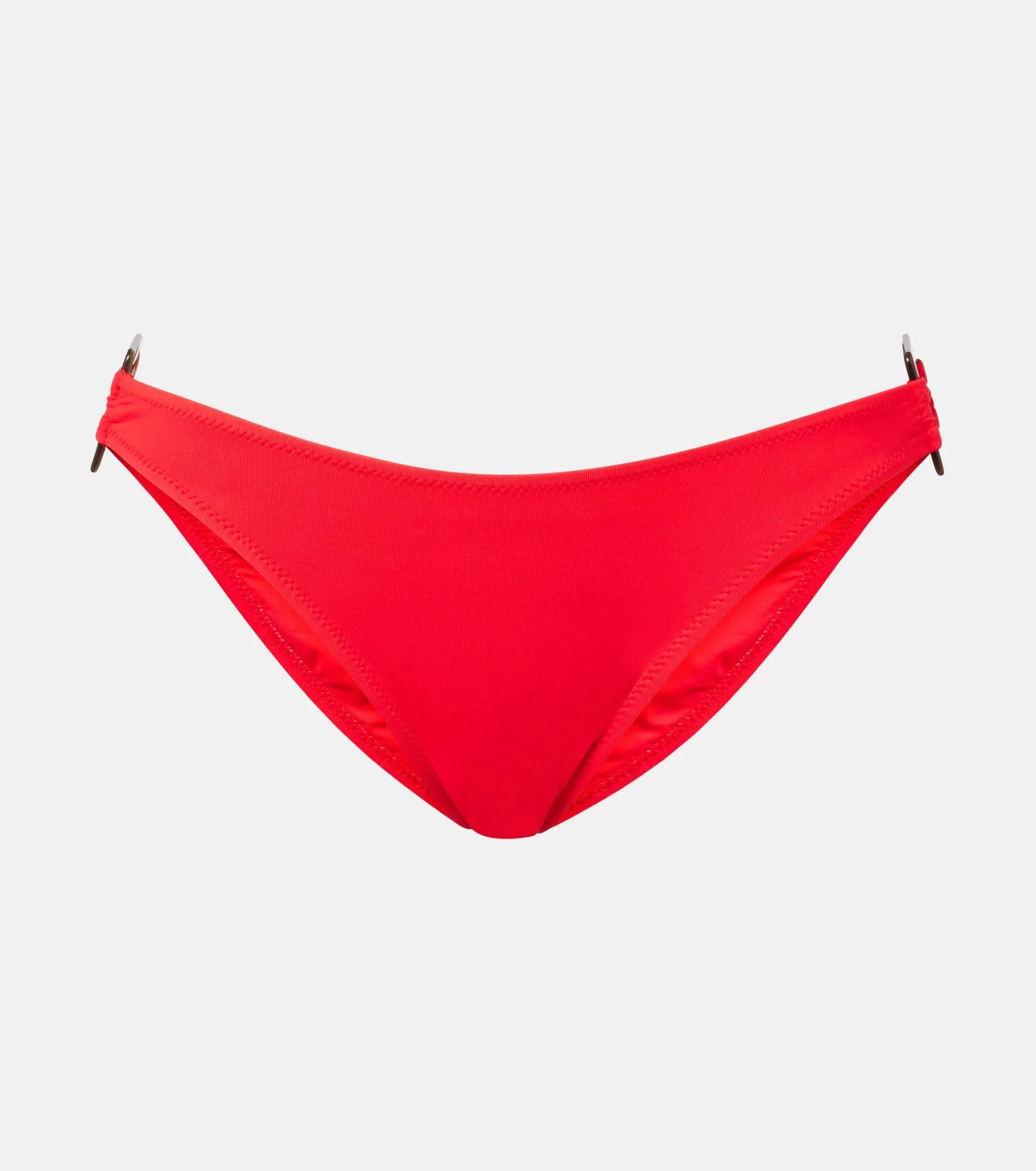 After working as a swimwear model, Melissa Odabash used her experience to create designs that are equal parts stylish and comfortable. The Paris bikini bottoms feature a hipster fit and understated glamour, accented by rectangular tortoiseshell embellishments. Product Details - Material: 86% polyamide, 14% elastane - Care instructions: hand wash - Made in Italy - Designer color name: Red - Item color: red - Item number: P01041594 Size & Fit - True to size - Medium-cut leg - The model seen in the picture is 178cm-5'10" and wearing a size IT 40