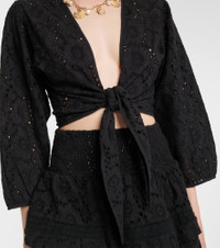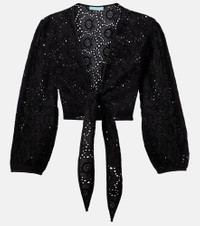 After working as a swimwear model, Melissa Odabash used her experience to create designs that are equal parts stylish and comfortable. Made from charming cotton lace, the Pia top is complete with self-ties at the front. Product Details - Material: 100% cotton - Care instructions: hand wash - Made in India - Designer color name: Black - Item color: black - Item number: P01041608 Size & Fit - True to size - Semi-sheer - Cinched waist - Adjustable hem - Non-stretchy fabric - Cropped - The model seen in the picture is 178cm-5'10" and wearing a size XS