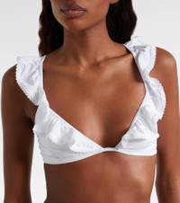 After working as a swimwear model, Melissa Odabash used her experience to create designs that are equal parts stylish and comfortable. The Pompano bikini top is shaped with a V-neckline and ruffled shoulder straps. Product Details - Material: 86% polyamide, 14% elastane - Care instructions: hand wash - Made in Italy - Designer color name: White - Item color: white - Hardware color: gold - Adjustable shoulder straps - Closure: clip fastening - Includes: dust bag - Item number: P01125398 Size & Fit - True to size - Unpadded Top - The model seen in the picture is 178cm-5'10", cup size B, and wearing a size IT 40