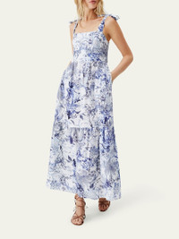 Melissa Odabash "Posie" dress is framed with self-tie shoulder straps and features a tiered skirt Square neckline Sleeveless Side seam pockets Back keyhole cutout Full length Slipover style Cotton/linen Unlined Hand wash Imported Online Inquiries: BGS21_T6MWV| Store Inquiries: #5014258