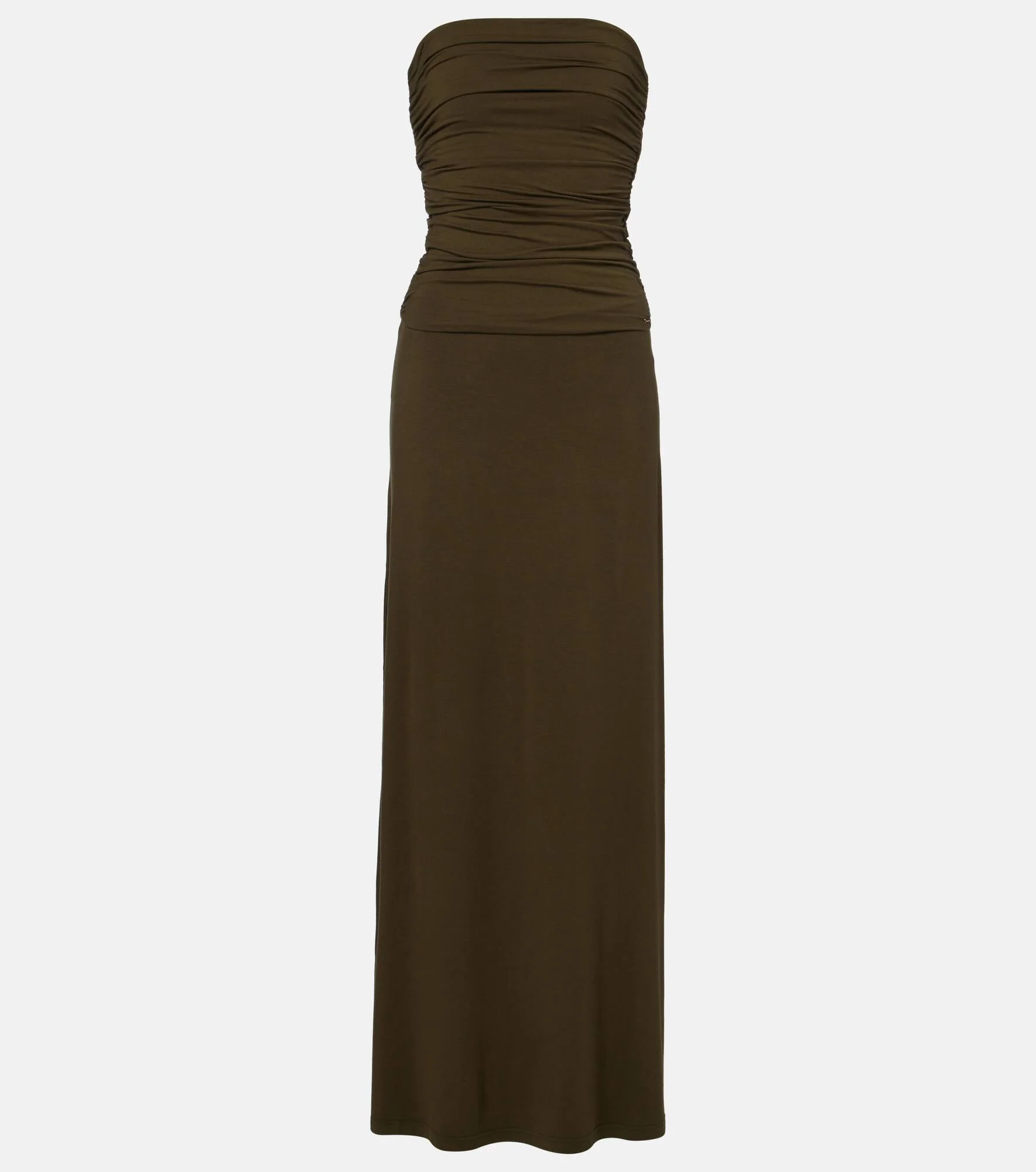 After working as a swimwear model, Melissa Odabash used her experience to create designs that are equal parts stylish and comfortable. The Rae maxi dress is designed with a ruched, strapless bodice and a streamlined skirt. Product Details - Material: 95% viscose, 5% elastane - Care instructions: hand wash cold - Made in China - Designer color name: Olive - Item color: green - Item number: P01125406 Size & Fit - True to size - Strapless - Fitted - Stretchy fabric - The model seen in the picture is 178cm-5'10" and wearing a size XS