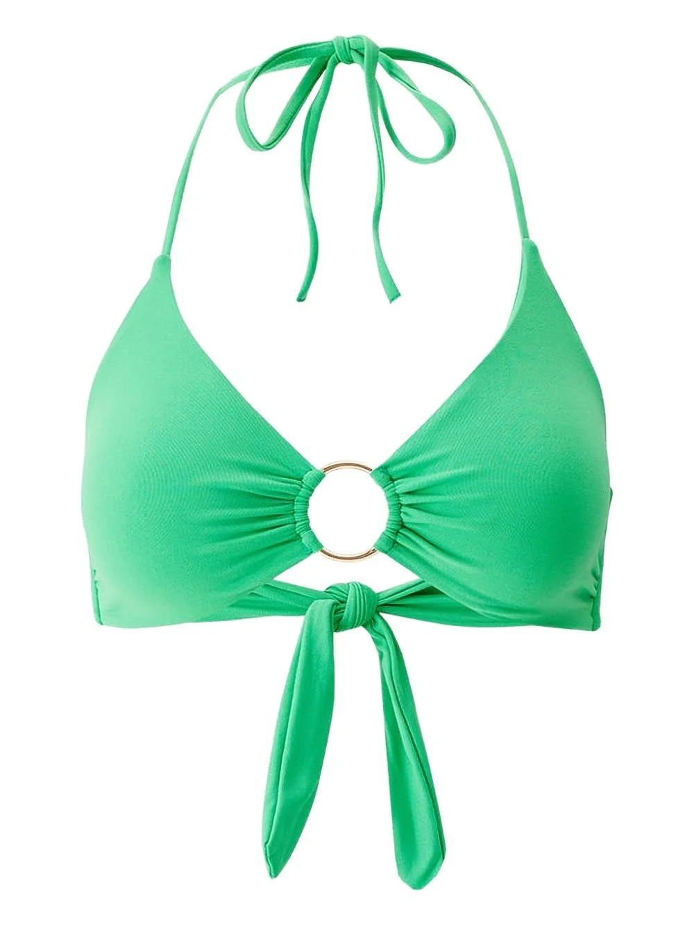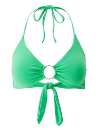ring-detail halter bikini top Highlights - Green - Halter neck - Ring embellishment - Tie fastening - Triangle cups - Smooth fabric - Be mindful to try on swimwear over your own garments. Made in Italy Composition Fabric 100% Washing instructions Read Manufacturer Guidelines