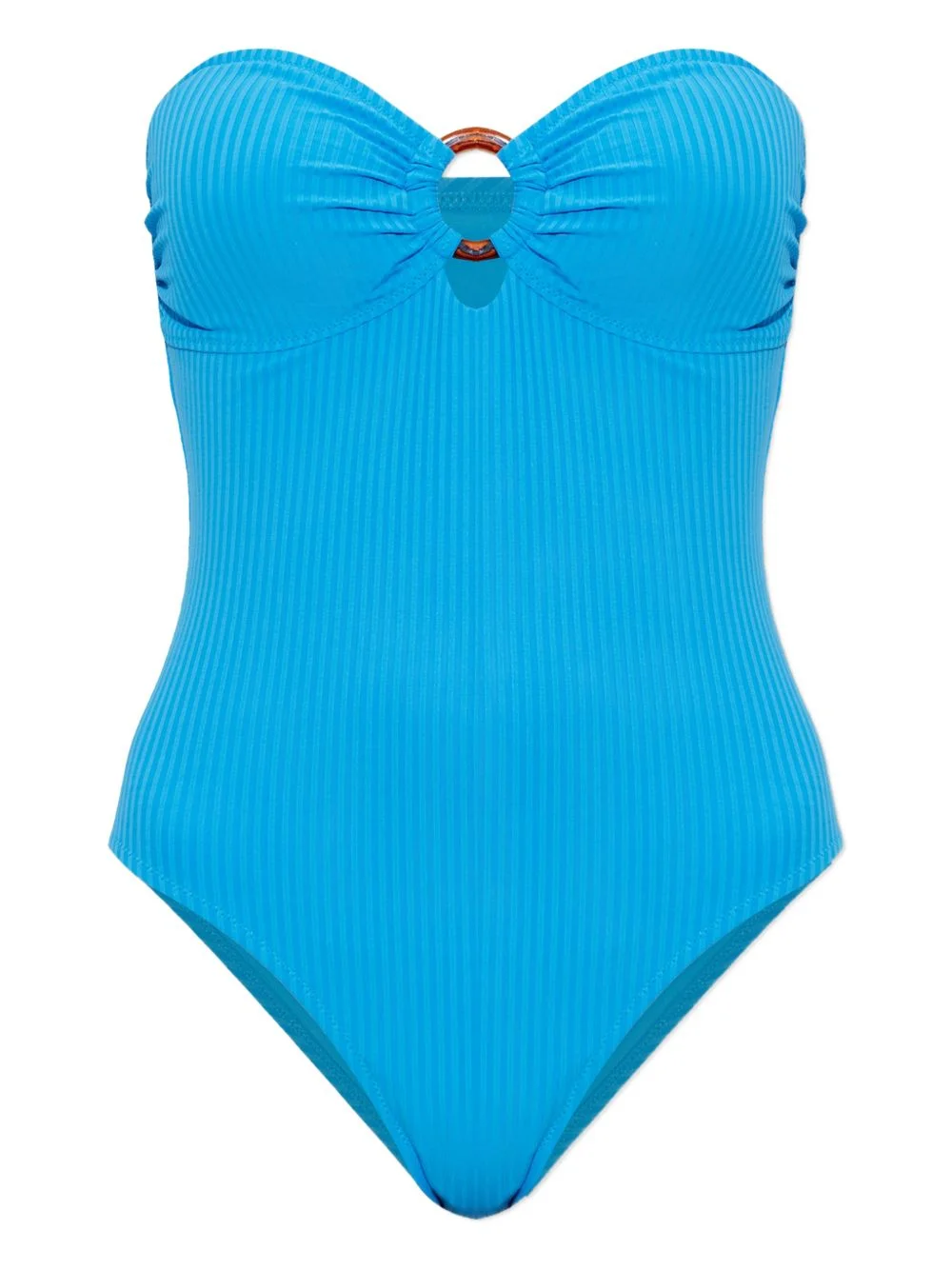 ring-detail swimsuit Highlights - Blue - Ring detail - Strapless - Ribbed texture - Sweetheart neck - Ruched detail - Be mindful to try on swimwear over your own garments. Made in Italy Composition Polyamide 86%, Elastane 14% Washing instructions Read Manufacturer Guidelines