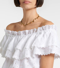 After working as a swimwear model, Melissa Odabash used her experience to create designs that are equal parts stylish and comfortable. Made from pure cotton, the Ruth crop top showcases a broderie anglaise finish and an off-shoulder, ruffled neckline. Product Details - Material: 100% cotton - Care instructions: hand wash - Made in India - Designer color name: White - Item color: white - Elasticated waistband - Item number: P01130284 Size & Fit - True to size - Off-the-shoulder - Designed for a loose fit - Elasticated hem - Non-stretchy fabric - Slightly cropped - The model seen in the picture is 178cm-5'10" and wearing a size XS