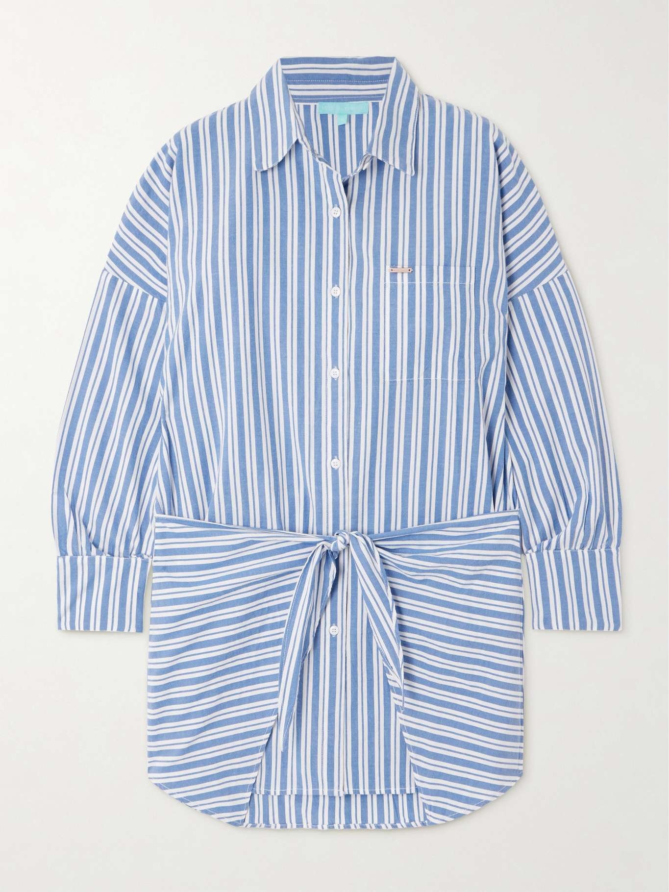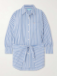 EDITORS'NOTES Melissa Odabash's 'Sara' shirt dress can be worn for so many occasions on vacation - style it over a swimsuit when spending the day on a boat, wear it with slides while checking out local sights or having lunch al fresco. It's made from striped cotton and has wrap-effect ties to cinch the floaty shape. SIZE & FIT Model measurements: - Fits true to size, take your normal size - Designed for a slightly loose fit, use the tie belt to cinch in at the waist - Lightweight, non-stretchy fabric - Model is 175cm/ 5'9" and is wearing a size Small - Bust: 85cm/ 33.5” - Waist: 63cm/ 25” - Hip: 90cm/ 35.5” DETAILS & CARE - Light-blue and white cotton - Button fastenings along front - 100% cotton - Hand wash