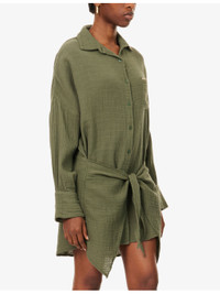 PRODUCT DETAILS - Melissa Odabash cotton dress - 100% cotton - Exposed button fastening at front - Relaxed fit, collar, long sleeves, dropped shoulders, patch pocket, gold-toned branded plaque, wrap front with tie waist - Hand wash - True to size - Lightweight, non-stretch Ref: R04557302