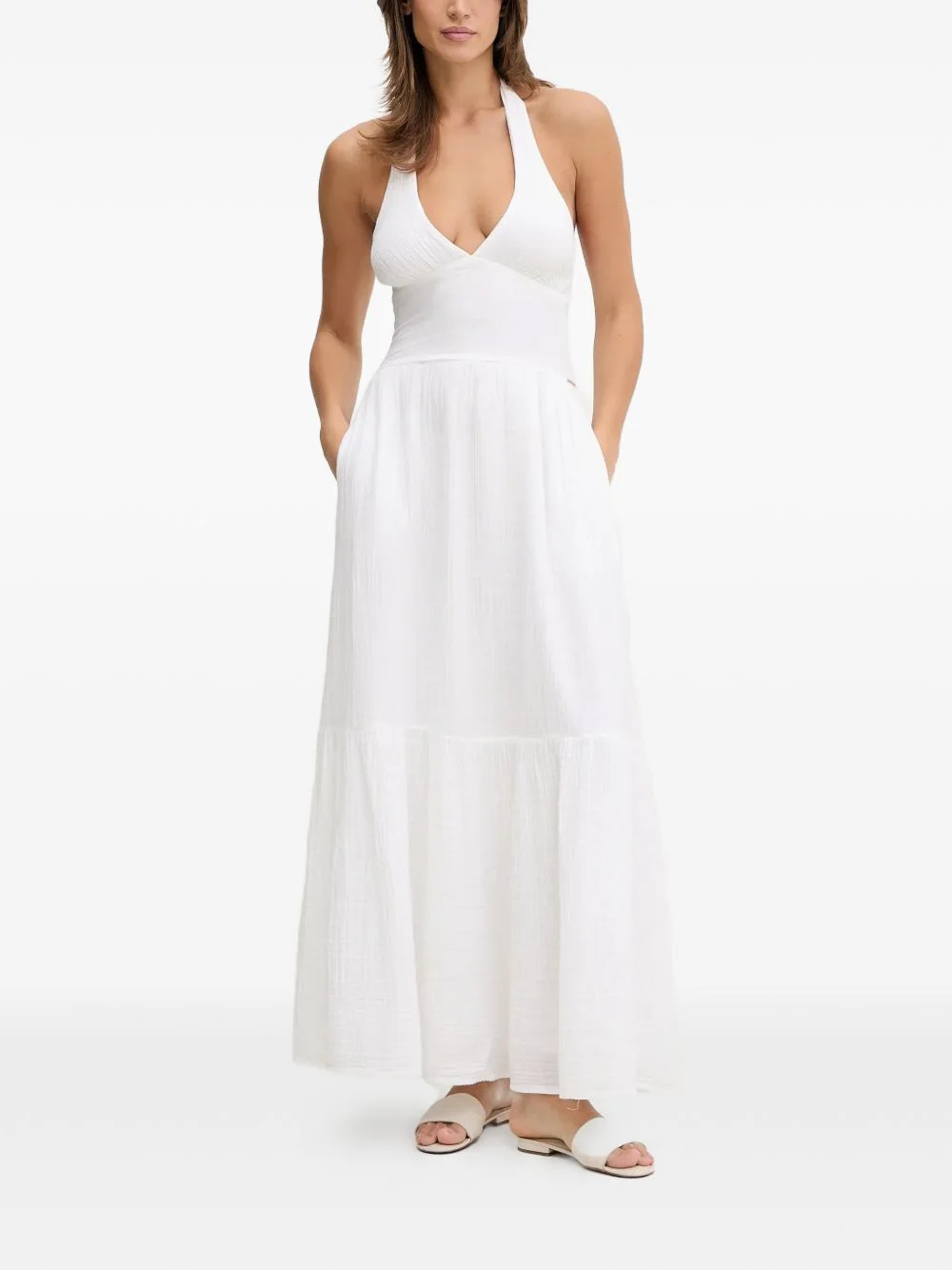 Shay halterneck maxi dress Highlights - White - V-neck - Rear tie fastening - Side slip pockets - Tiered skirt - Textured Imported Composition Cotton 100% Washing instructions Read Manufacturer Guidelines