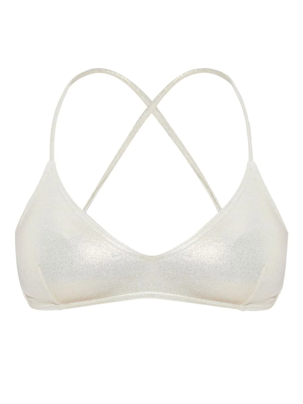 Singapore bikini top Highlights - Gold-tone - Rear tie fastening - Metallic finish - Crossover shoulder straps - Be mindful to try on swimwear over your own garments. Made in Italy Composition Polyamide 86%, Spandex/Elastane 14%