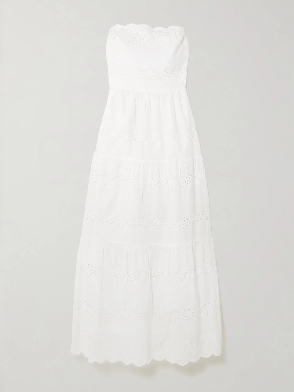 Sophie Strapless Scalloped Broderie Anglaise Cotton Midi Dress