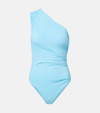 The Sydney swimsuit from Melissa Odabash arrives in a timeless blue shade that will set a strong base for stylish beach days. Designed with one shoulder, the one-piece is made in Italy with figure-flattering ruching across the front and ties at either side. Product Details - Material: 86% polyamide, 14% elastane - Care instructions: hand wash - Made in Italy - Designer color name: Celeste - Item color: blue - Elasticated waistband - Includes: dust bag - Item number: P01130250 Size & Fit - True to size - Removable padding - Medium-cut leg - The model seen in the picture is 178cm-5'10", cup size B, and wearing a size IT 40