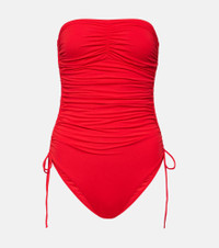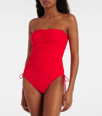 Product Details - Material: 86% polyamide, 14% elastane - Made in Italy - Designer color name: Red - Care instructions: hand wash - Removable cup padding - Item number: P00929416 Size & Fit - Fits large to size - we recommend trying one size smaller - Strapless - Removable padding - Medium-cut leg - The model seen in the picture is 178cm-5'10", cup size B, and wearing a size IT 38