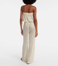 After working as a swimwear model, Melissa Odabash used her experience to create designs that are equal parts stylish and comfortable. This wide-leg jumpsuit features a strapless silhouette with an elasticated waistband and semi-sheer lame construction. Product Details - Material: 75% nylon, 25% metallic fibres - Care instructions: hand wash - Made in China - Designer color name: Gold - Item color: gold, white - Closure: self-ties - Elasticated waistband - Item number: P01130295 Size & Fit - True to size - Strapless - Semi-sheer - Loose fit, elasticated waist - Slightly stretchy fabric - Wide-leg - The model seen in the picture is 178cm-5'10" and wearing a size XS
