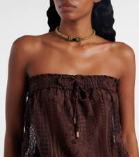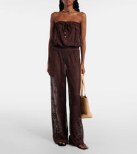 Product Details - Material: 70% cotton, 30% nylon - Care instructions: hand wash - Made in China - Designer color name: Brown - Item color: brown - Elasticated waistband - Item number: P01041633 Size & Fit - True to size - Strapless - Semi-sheer - Loose fit, elasticated waist - Non-stretchy fabric - Wide-leg - The model seen in the picture is 178cm-5'10" and wearing a size XS