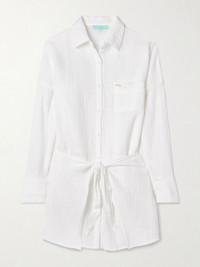 Sara tie-front crinkled cotton-gauze mini shirt dress White