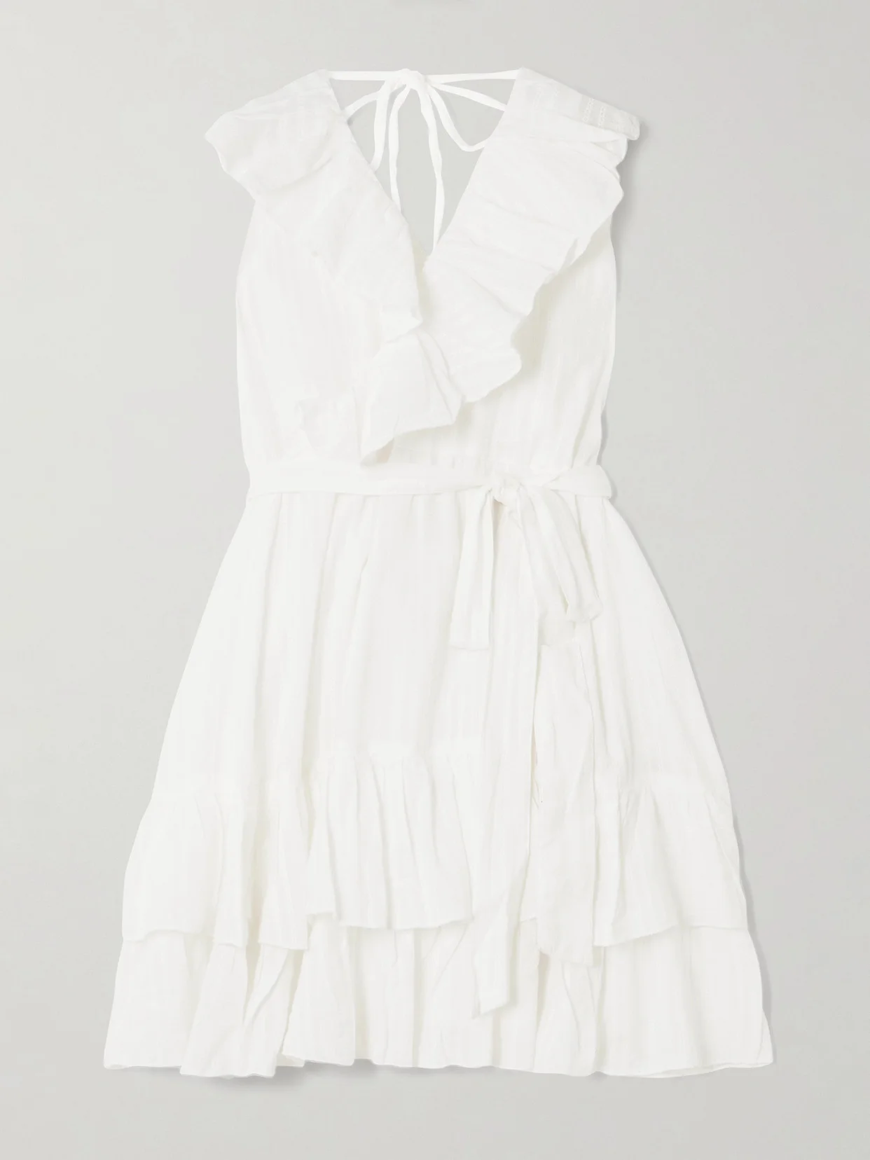 Molly Belted Ruffled Embroidered Cotton Mini Wrap Dress