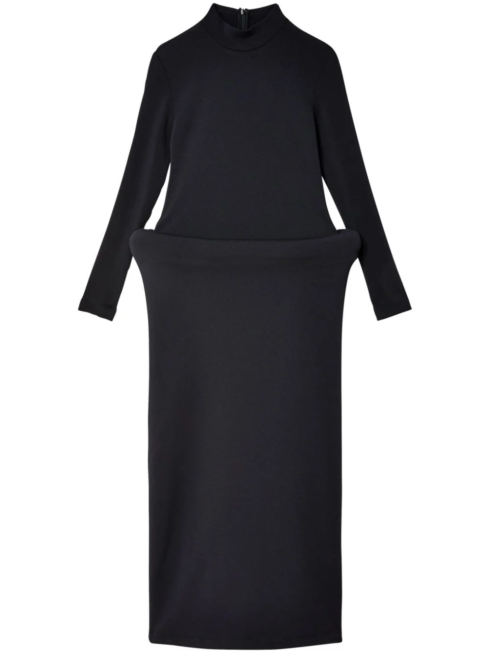 band-collar long-sleeve dress Highlights - Black - Band collar - Concealed rear zip fastening - Long sleeves - Curved waistband - Straight hem - Mid-length Made in United States Composition Polyester 100% Washing instructions Read Manufacturer Guidelines