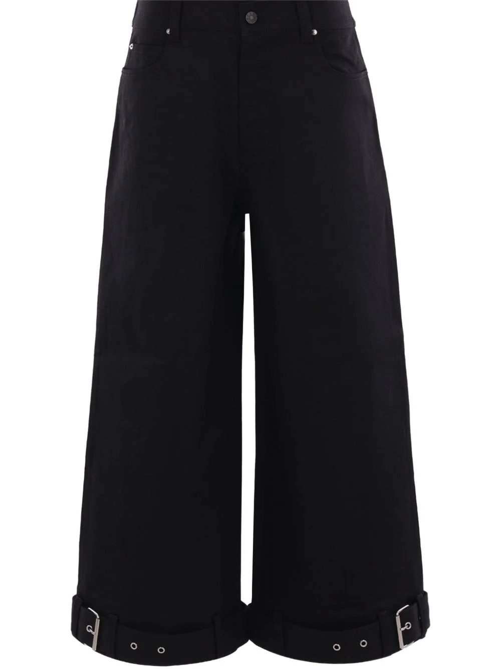 belted cropped jeans Highlights - Black - Concealed fly and button fastening - Rear elasticated waistband - Classic five pockets - Belt loops Imported Composition Cotton 100%