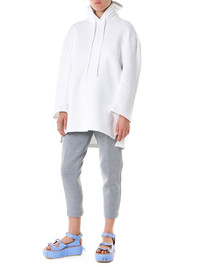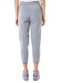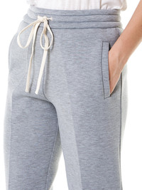 Grey cropped sweatpants featuring an elasticized waist with contrast-color drawstrings, welted hip pockets, individual rear pocket, finished with tonal stitching. Poly-Wool-Blend / Model wears a size S.
