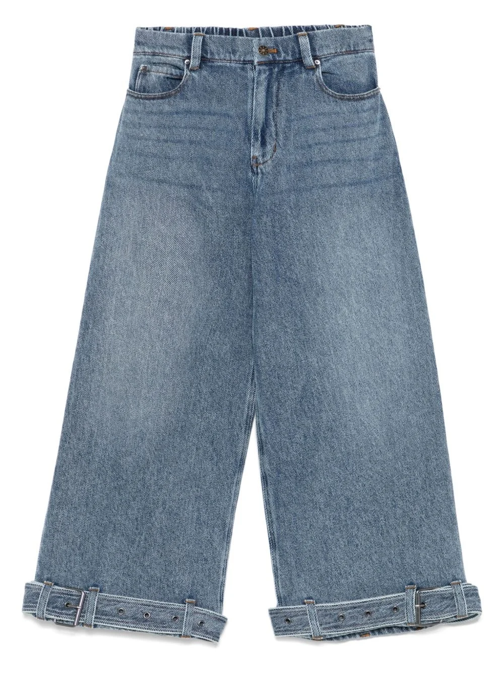cropped jeans Highlights - Cerulean blue - Concealed fly and button fastening - Rear elasticated waistband - Classic five pockets - Belted cuffs Imported Composition Cotton 100%