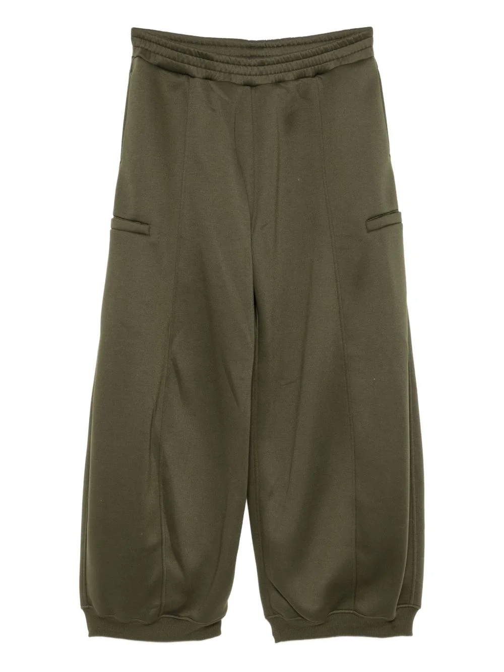 round-leg trousers Highlights - Olive green - Elasticated waistband - Two side inset pockets - Two side welt pockets Imported Composition Polyester 100% Washing instructions Hand Wash