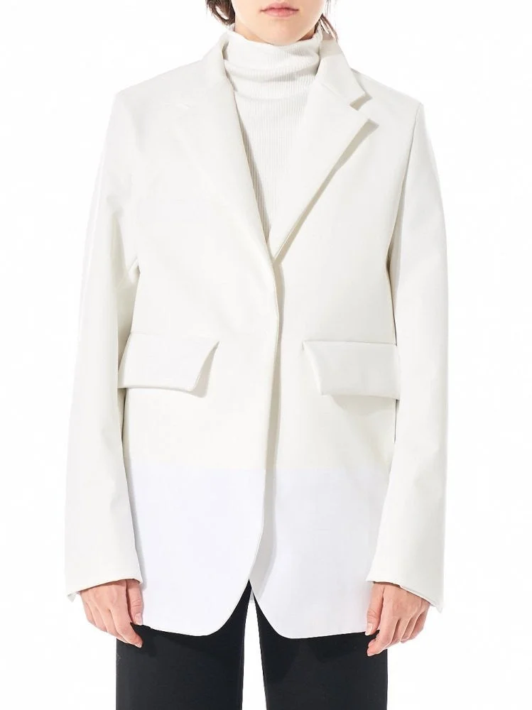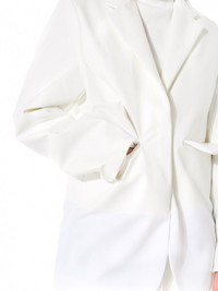 Melitta Baumeister relaxed-fit structured blazer in white, notched lapel, concealed front hook closure, front flap pockets, straight hem, tonal stitching. Composition - Wool Blend Model wears a size S.